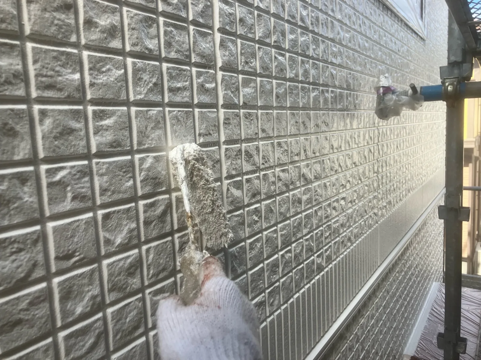 下塗りの目的は、塗料が外壁にしっかりと密着するための下地を作ることです。これをしっかりと行う ことで、上塗りの塗料が均一に乗り、塗装の耐久性や仕上がりが大きく向上します。